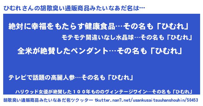 | ヘコむあだ名 | 『ひむぷりん』『ひむれ(爆)』『牛乳』 |