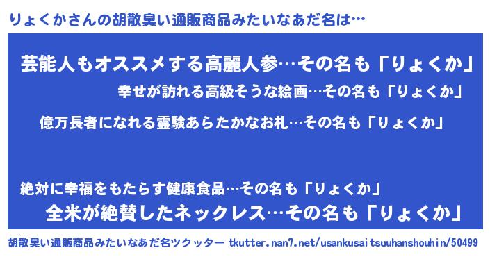 | 恥ずかしいあだ名 | 『プリティーりょくか』『リョリンリン』 |
