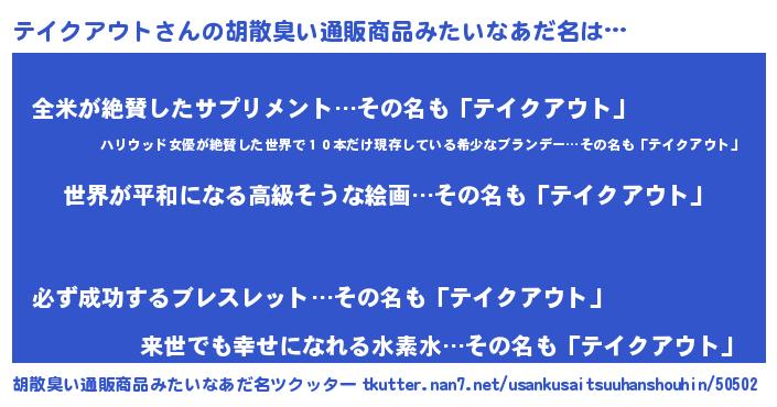 | 意味不明あだ名 | 『テイクアウトフォーエバー』 |