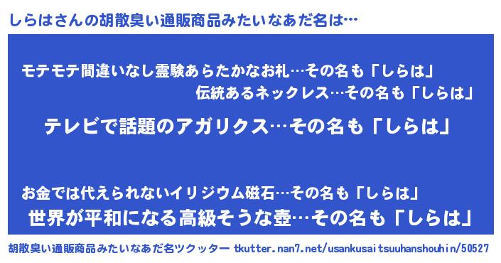 | 意味不明あだ名 | 『自称しらは』『ペロリンしらは』 |