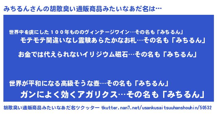 | 意味不明あだ名 | 『眠気覚ましガムみちるん味』 |
