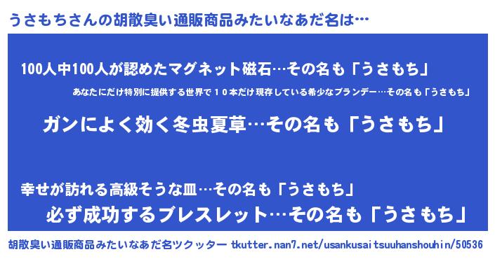 | 欧米人風あだ名 | 『ケンブリッジうさもち』 |