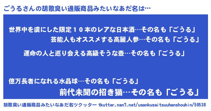 | ヘコむあだ名 | 『酢こんぶ』『ごうる(爆)』 |