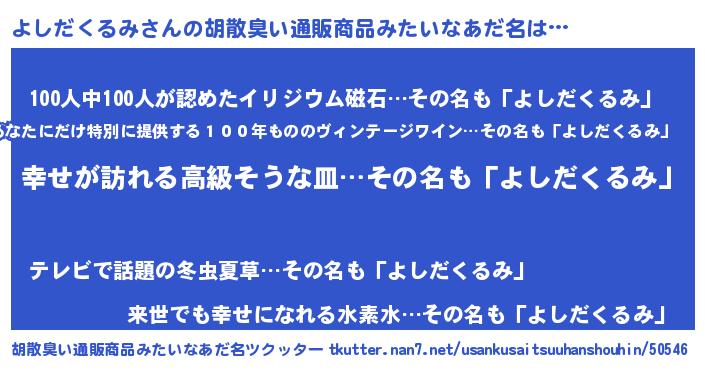 | ヘコむあだ名 | 『つくし』『よしだくるみ(遠い目)』 |