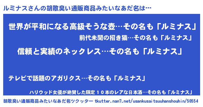 | 意味不明あだ名 | 『とにかく怪しいルミナス』 |