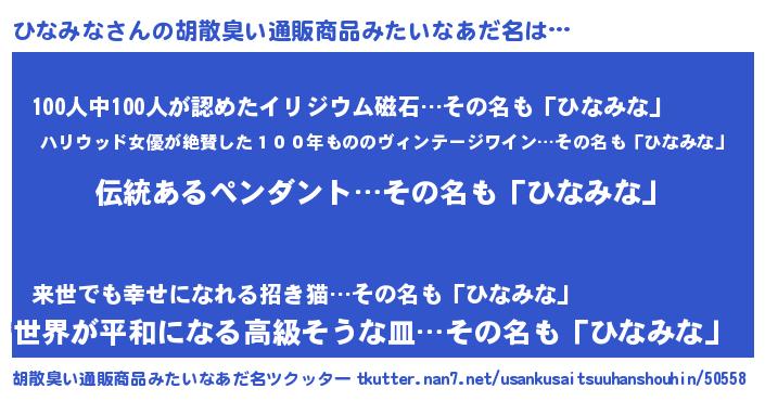 | 意味不明あだ名 | 『とにかく怪しいひなみな』 |