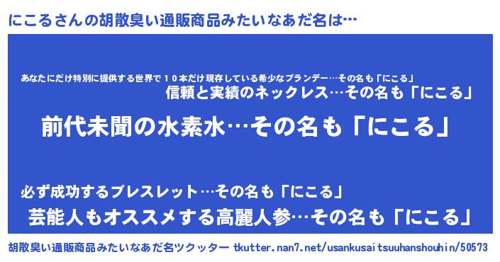| ヘコむあだ名 | 『にこる(遠い目)』『にこを』 |