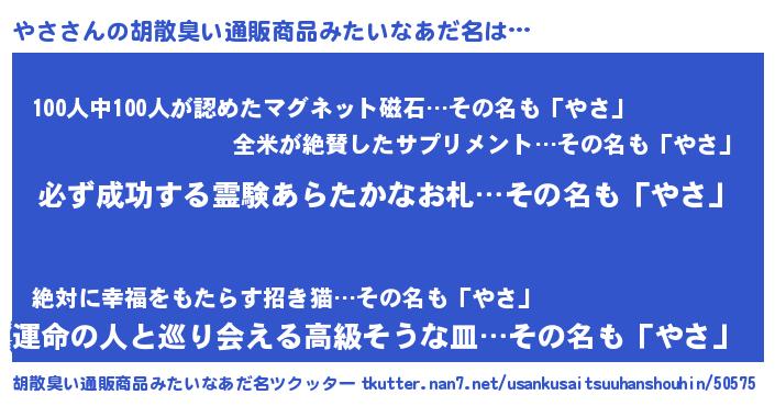 | 男性向けラノベタイトル風あだ名 | 『やさの憂鬱』『ヤサスレイヤー』 |