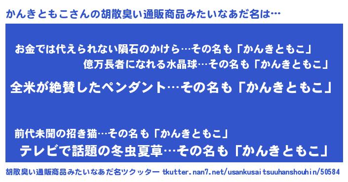 | 欧米人風あだ名 | 『ウサインかんきともこ』 |