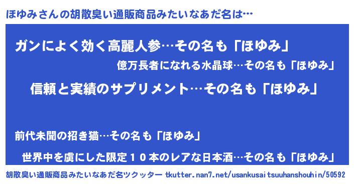 | 意味不明あだ名 | 『とにかく怪しいほゆみ』『自称ほゆみ』 |