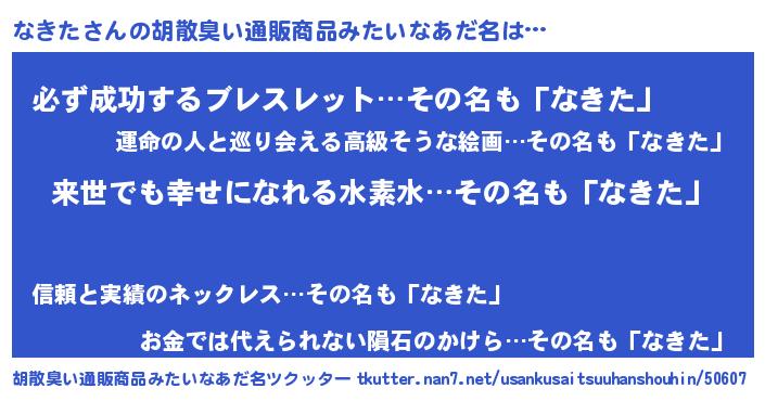 | 女子向けラノベタイトル風あだ名 | 『なきたの契約王妃』『なきた恋絵巻』 |