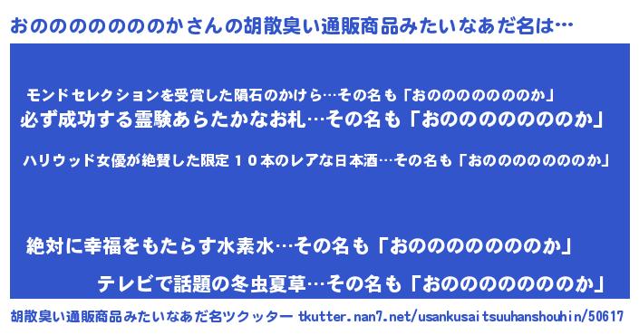 | 意味不明あだ名 | 『住所不定無職おのののののののか(65歳)』 |