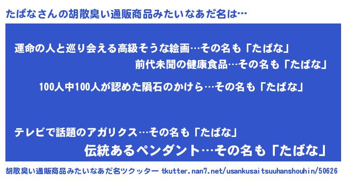 | 意味不明あだ名 | 『眠気覚ましガムたばな味』『自称たばな』 |