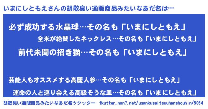 | 意味不明あだ名 | 『永久保存いまにしともえ』 |