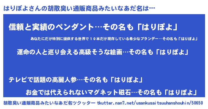 | 女子向けラノベタイトル風あだ名 | 『はりぽよの婚約者』『はりぽよ恋絵巻』 |