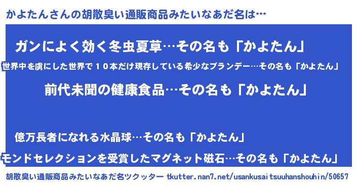 | ヘコむあだ名 | 『かよたん(苦笑)』『かよもー』 |
