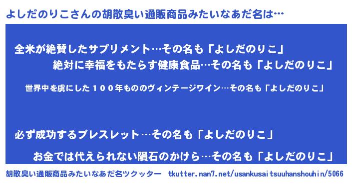 よしだのりこさんの胡散臭い通販商品みたいなあだ名をツクッター!