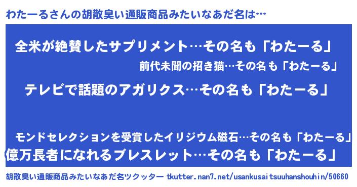 | 意味不明あだ名 | 『自称わたーる』『ペロリンわたーる』 |