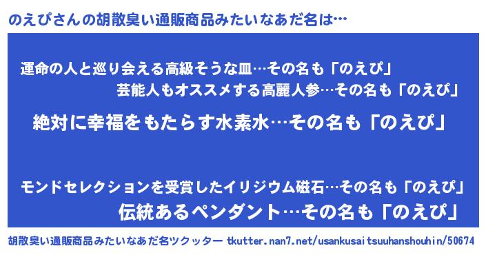 | 意味不明あだ名 | 『永久保存のえぴ』『のえぴフォーエバー』 |