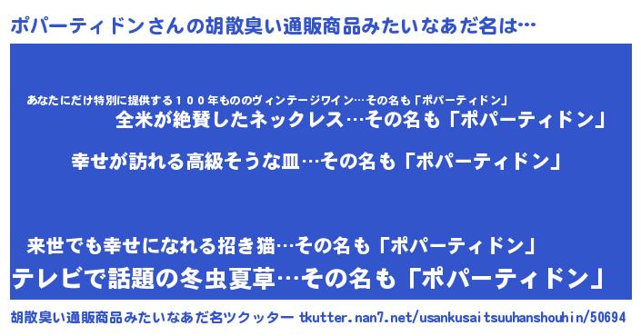 | 男性向けラノベタイトル風あだ名 | 『ポパーティドンスレイヤー』 |