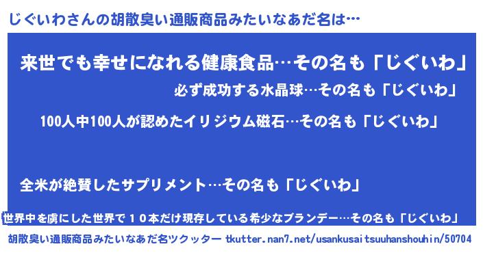 | 欧米人風あだ名 | 『ダニエルじぐいわ』『マイケルじぐいわ』 |