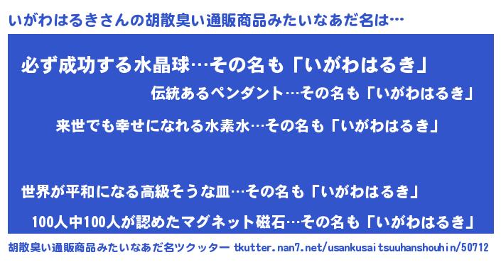 いがわはるきさんの胡散臭い通販商品みたいなあだ名をツクッター!