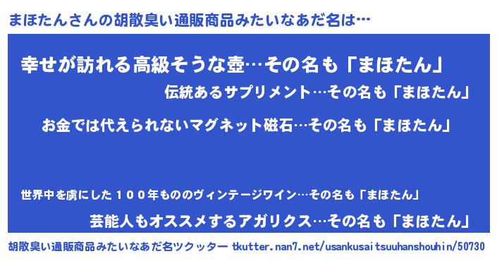 | ヘコむあだ名 | 『なまこ酢』『まほ太郎』 |