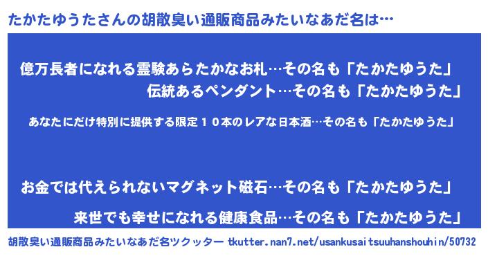 | 意味不明あだ名 | 『住所不定無職たかたゆうた(65歳)』 |