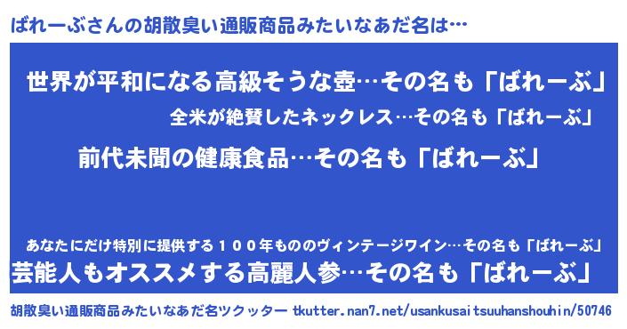 | 意味不明あだ名 | 『永久保存ばれーぶ』『自称ばれーぶ』 |