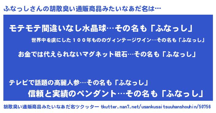 | ヘコむあだ名 | 『ふなにー』『ふなっ子』『豆乳』 |