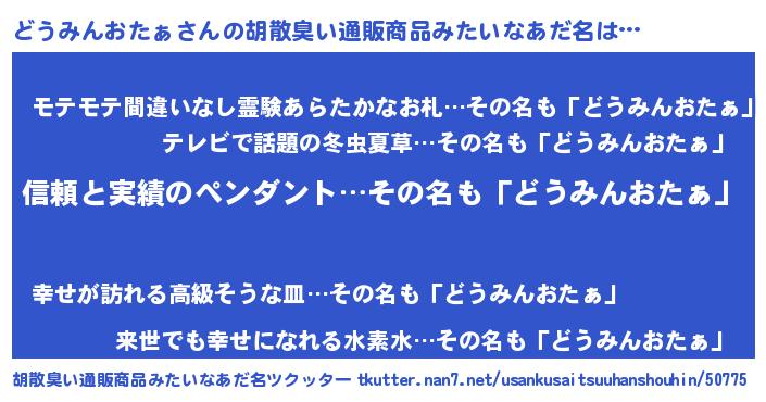 | 意味不明あだ名 | 『とにかく怪しいどうみんおたぁ』 |