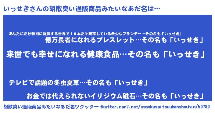 | ヘコむあだ名 | 『いっせき(笑)』『いっっふぃ~』 |