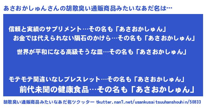 | ファンタジー風あだ名 | 『エターナルアサオカシュンー』 |