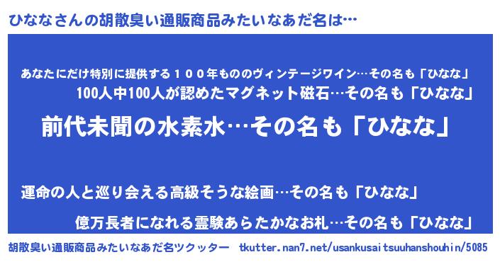 | 意味不明あだ名 | 『永久保存ひなな』『ペロリンひなな』 |