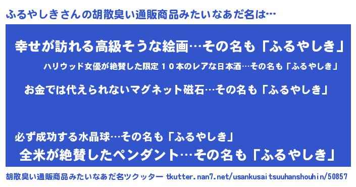 | 男性向けラノベタイトル風あだ名 | 『ノーゲーム・ノーフルヤシキ』 |