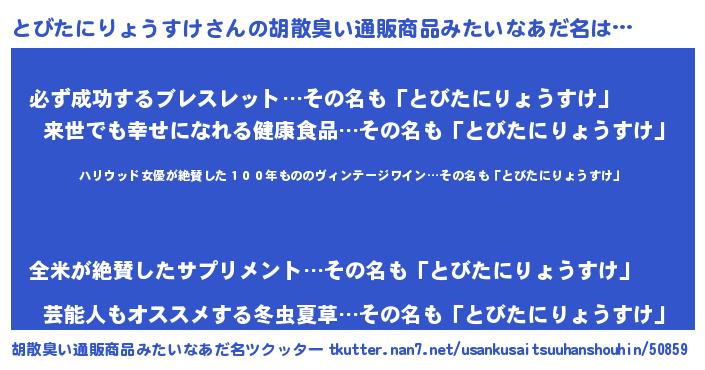 | 意味不明あだ名 | 『住所不定無職とびたにりょうすけ(4歳)』 |