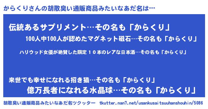 | 意味不明あだ名 | 『住所不定無職からくり(39歳)』 |