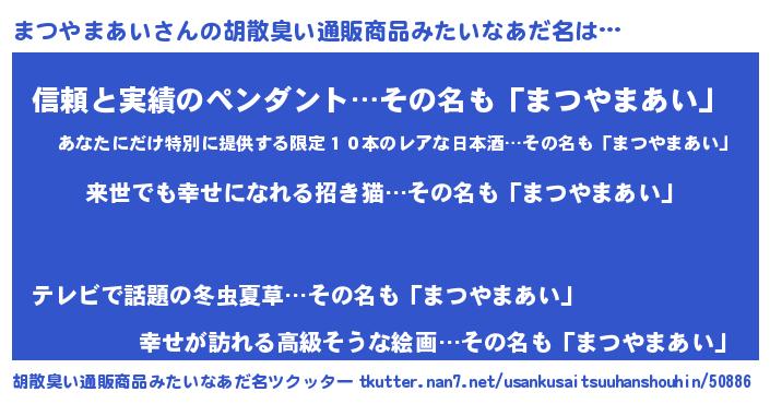 | 意味不明あだ名 | 『永久保存まつやまあい』 |