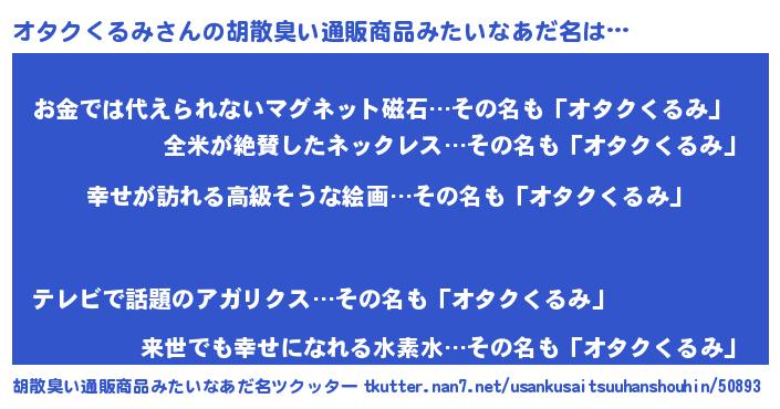 | ヘコむあだ名 | 『つくし』『オタクくるみ(爆)』 |