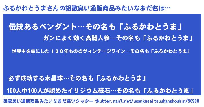| 肩書あだ名 | 『ふるかわとうま船長』 |