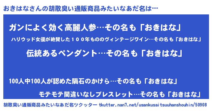 | 意味不明あだ名 | 『とにかく怪しいおきはな』 |