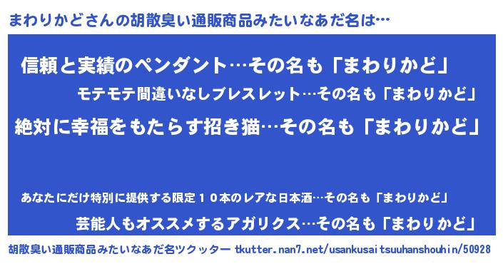 | 意味不明あだ名 | 『永久保存まわりかど』『自称まわりかど』 |