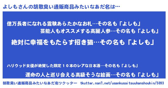 | 欧米人風あだ名 | 『ダルビッシュよしも』『マイケルよしも』 |