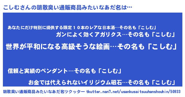 | 意味不明あだ名 | 『こしむフォーエバー』『ニラ科こしむ属』 |