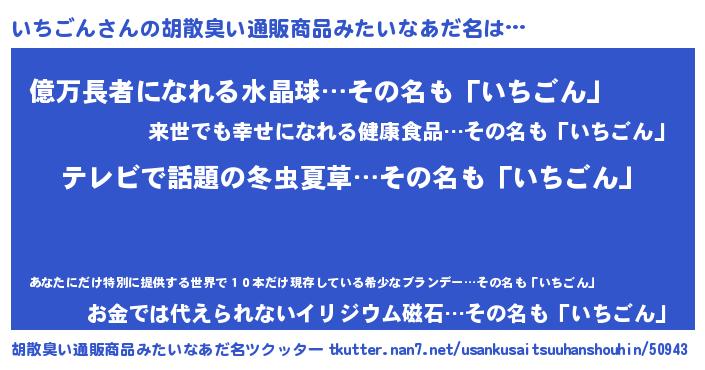 | ヒーロー風カッコイイあだ名 | 『サイバー戦士イチゴン』『ネオイチゴン』 |