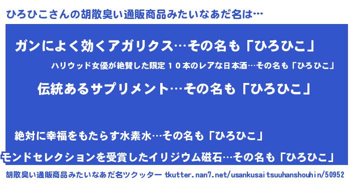 | 意味不明あだ名 | 『もやし科ひろひこ属』『自称ひろひこ』 |