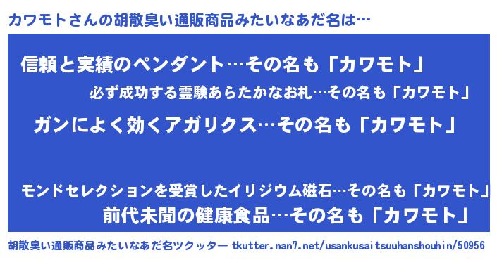 | 意味不明あだ名 | 『自称カワモト』『永久保存カワモト』 |