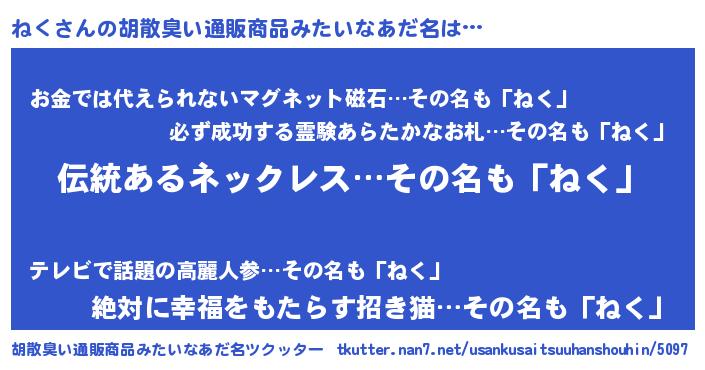 | ヘコむあだ名 | 『ねく太郎』『ねく(笑)』『ねくもー』 |