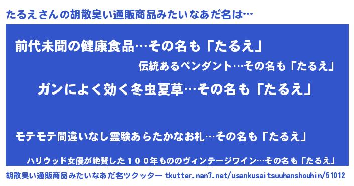| 意味不明あだ名 | 『自称たるえ』『永久保存たるえ』 |