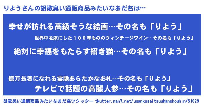 | ヘコむあだ名 | 『りよう(笑)』『つくし』『りよっぺ』 |